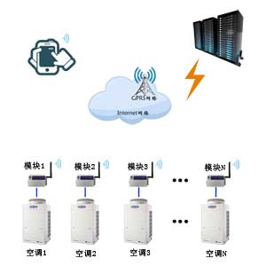 a、用户通过手机短信、GPRS、4G 控制检测空调状态。