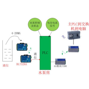 1)水池液位和水泵房之间无线传输需要用一对模拟量无线传输 DL7328A(4G模拟量无线传输),把液位信号实时传输到水泵房的PLC